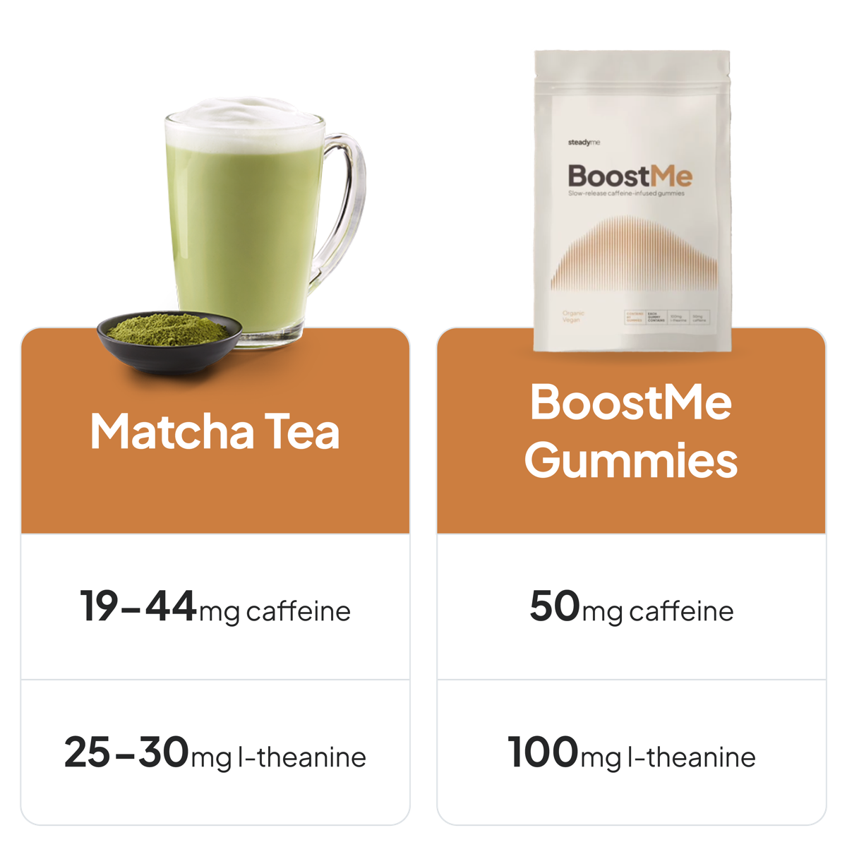 The best from tea: Steady energy and L-Theanine to counteract any anxiety.